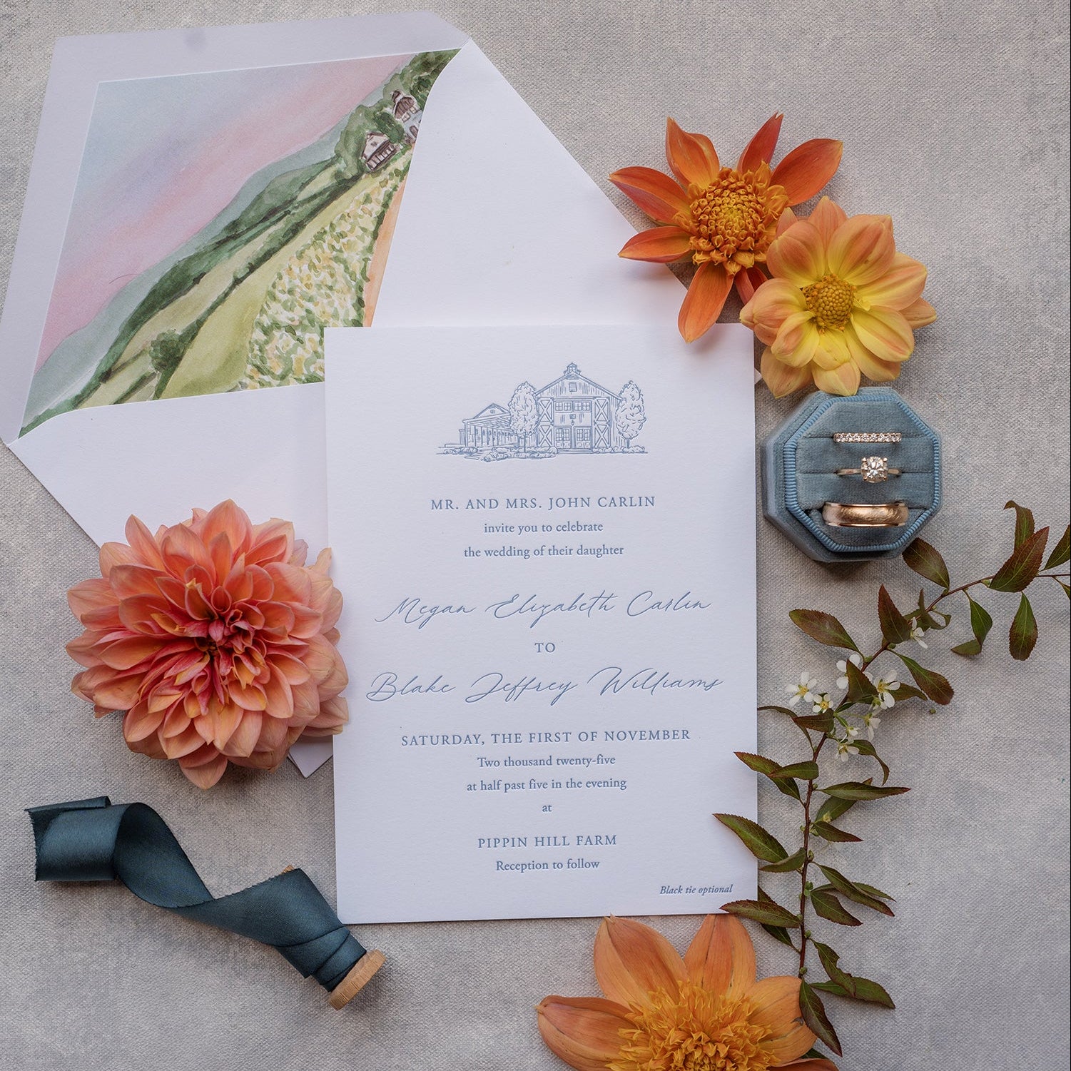 Invitations: Start planning 6–9 months out to ensure your suite sets the perfect tone for your celebration. Your invitation suite should feel like an extension of your day—thoughtful, refined, and unmistakably you.
