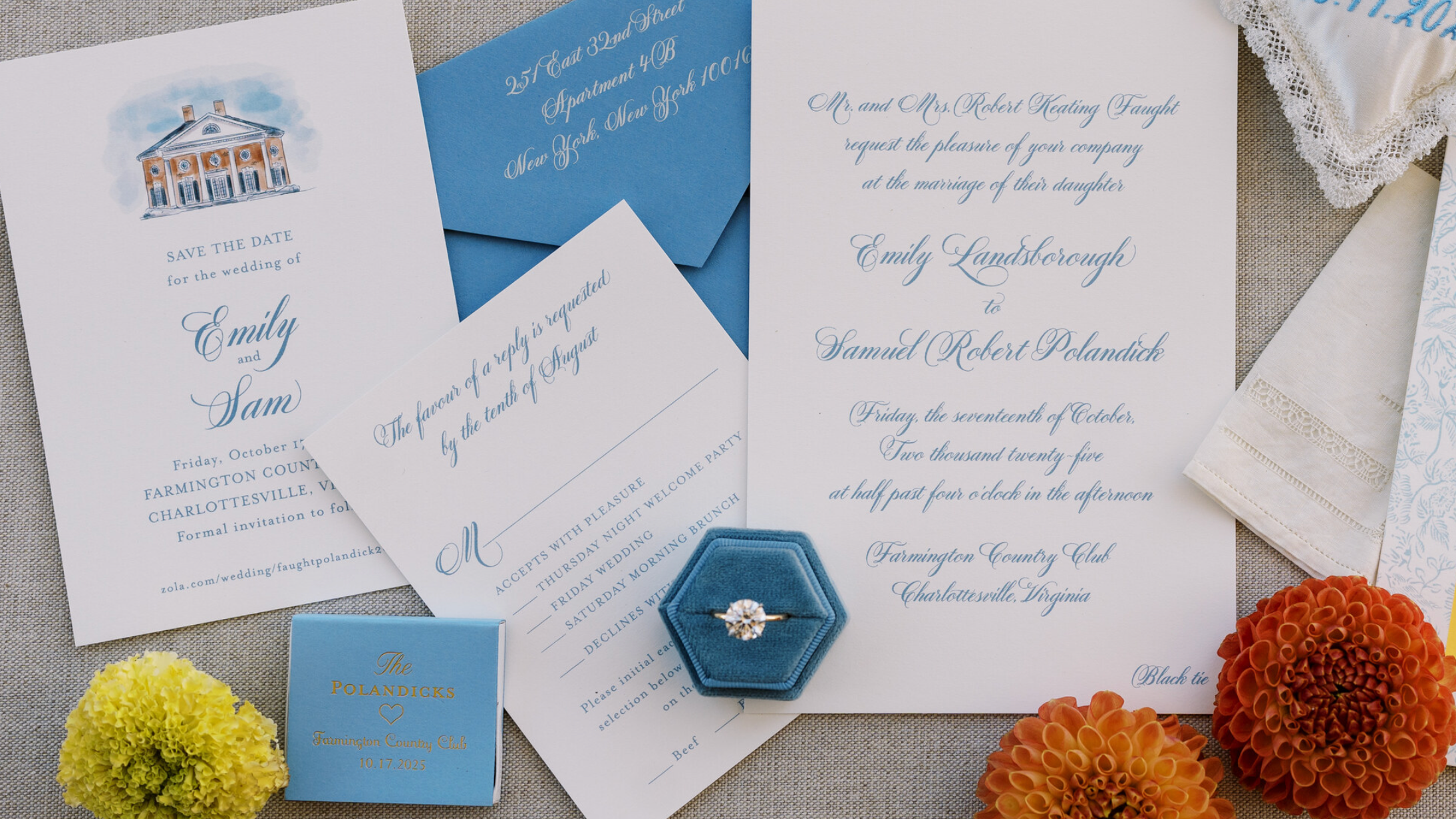 Save the Dates: Begin dreaming and designing 9–12 months out so your guests can mark their calendars in style. This is your guests’ first glimpse into the celebration, so let it set the mood with intention and a touch of personality.
