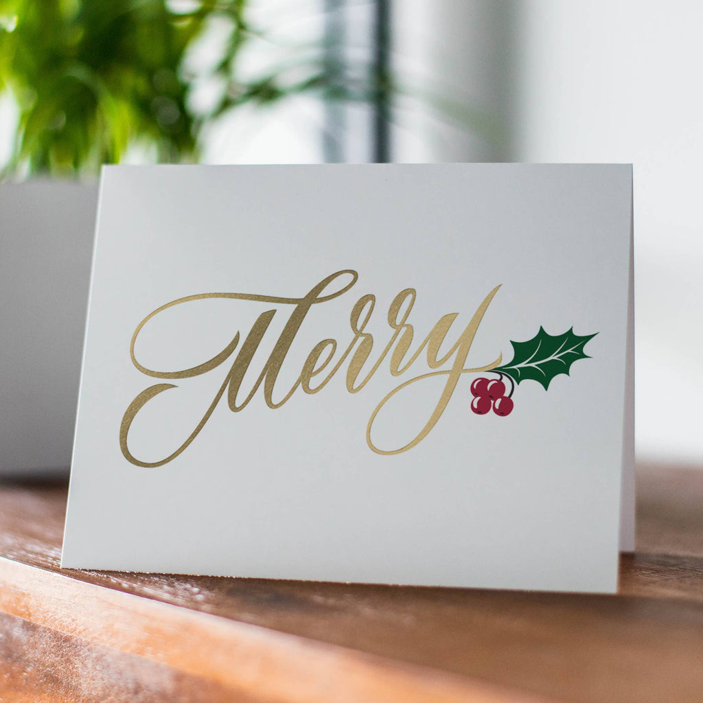 Fine Moments - Holiday Greeting Card – Merry with Holly Design